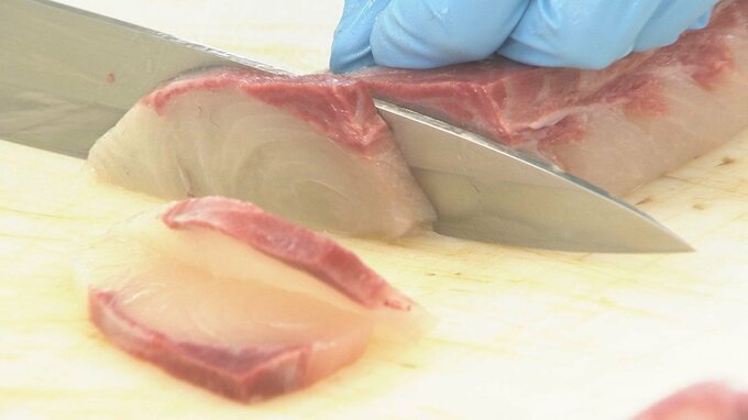 (県立海洋科学高校・食品コース3年・衛藤拓也さん)「夏が旬の魚は少ないので、夏はヒラマサが一番コリコリで青物の中では一番好きです」