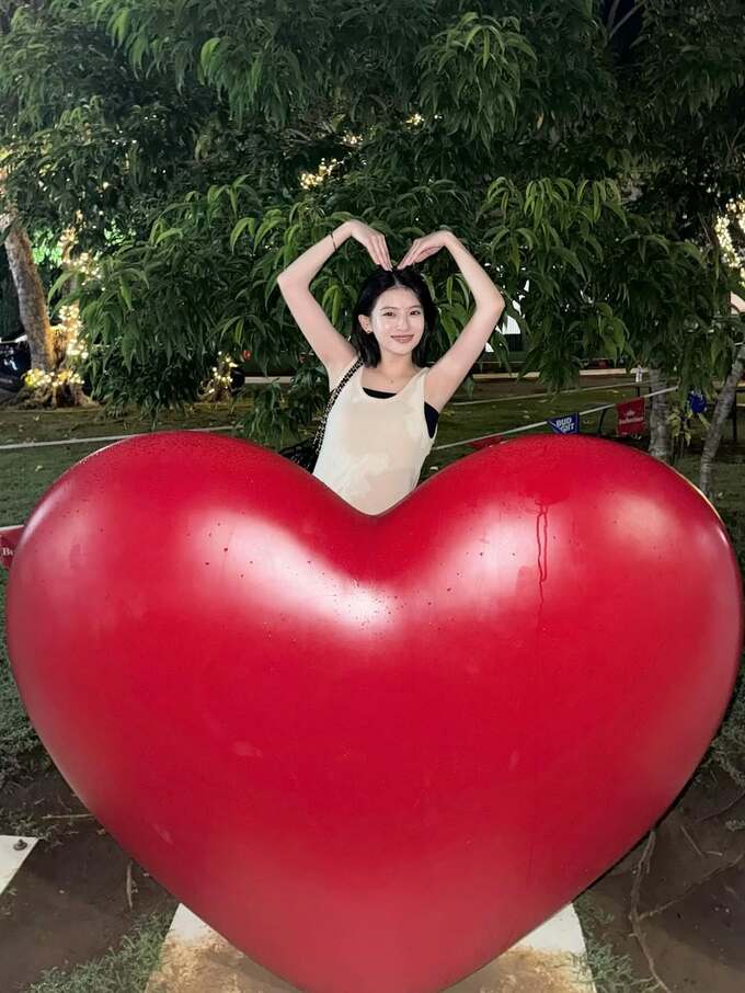 「たくさんのお祝いほんとにありがとうございます」「ほーっんとに感謝の気持ちでいっぱいです。。」とテキストした出口さんは、大きなハートのオブジェの向こう側からひょっこり顔を出して両腕でハートを作るポーズも投稿。