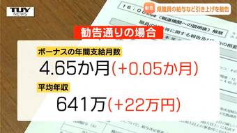 県職員行政職の平均年収は22万円増、ボーナスの年間支給月数は4.65か月に 県人事委員会が給与など引き上げを勧告(山形)