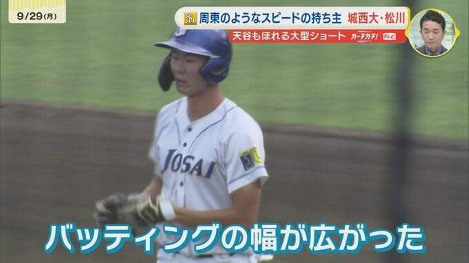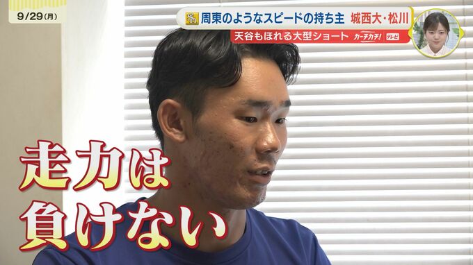 「バッティングも、昔から当てる能力っていうのは培ってたのかなって感じてますし、それにつれて足も速くなったっていうのもあって、内野安打だったりとかって足も生かせて、バッティングの方にも幅が効いてきたので、そこも自分のアピールポイントになります。」