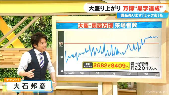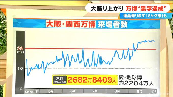 2005年に愛知県で開催された「愛・地球博」の来場者数は約2204万人だったんですが、大阪・関西万博の累計来場者数は10月4日時点で、それを400万人以上上回る、2682万8409人です。