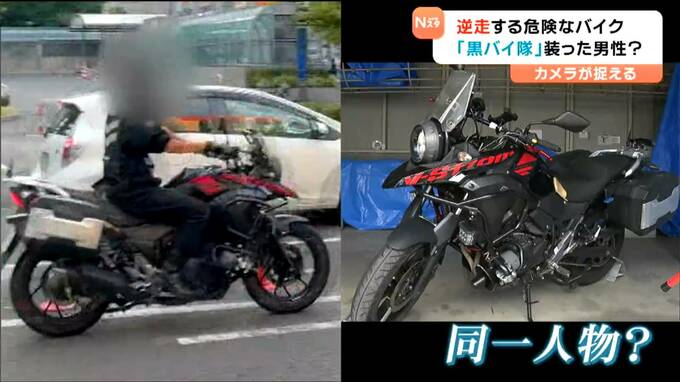 警察の「黒バイ隊員」を装ったなどとして男性が摘発された事件で、この男性と特徴がよく似た人物を視聴者のカメラが捉えていました。映っていたのは、黒いバイクで駅前を逆走する様子。撮影者は危険を感じたと話しています。