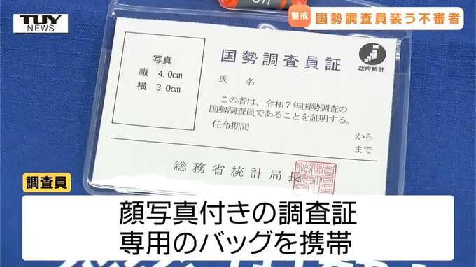 調査員は顔写真付きの調査証の他、専用のバッグを携帯しています。また、国勢調査員が年収や預金額、マイナンバーやパスワードなどを聞くことはありません。
