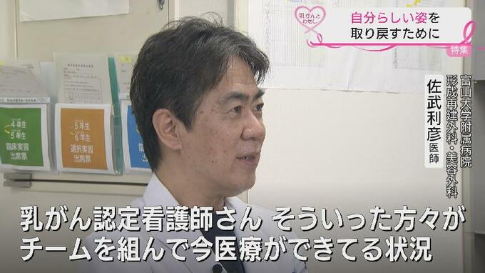 「富山大学附属病院では乳腺外科の先生、形成外科の先生、そして放射線治療の先生、病理の診断の先生、乳がん認定看護師さん。皆さんと連携し、チーム医療が整っています。なかなかそういう施設は全国的にも少ないと思います。これが各県に広まっていけば、日本国内の乳房再建率が上がり、乳房を失くしたことで困らない患者さんが増えてくると思います」