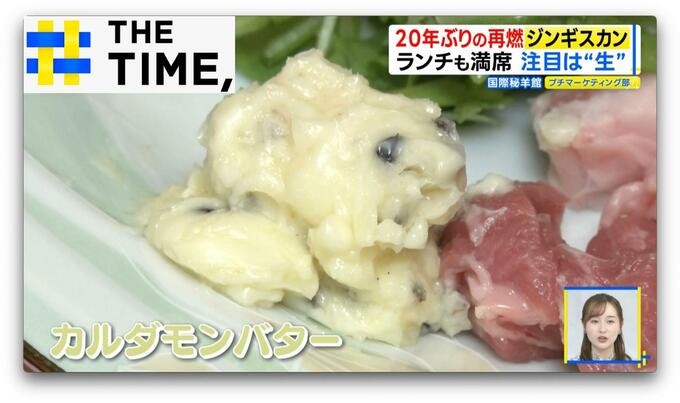 スパイスのカルダモンを練り込んだバターで豪快に焼き上げて食べる進化系ジンギスカンです。