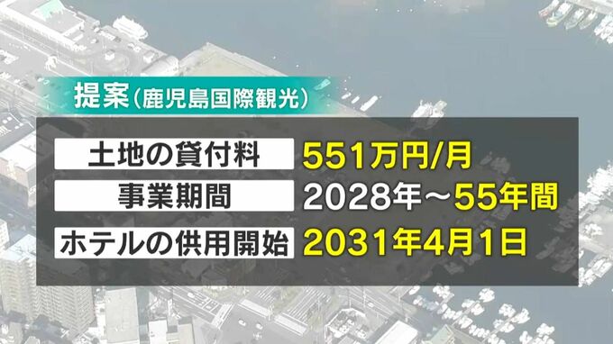 鹿児島国際観光の提案では、土地の貸付料は1か月に551万円。事業期間は、2028年からの55年間を想定しています。