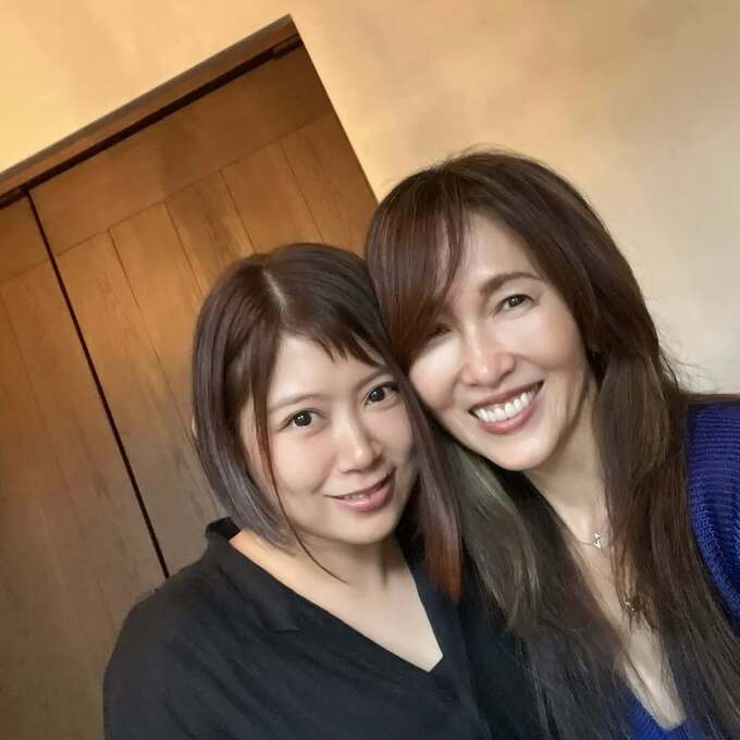 写真は室内で撮影されたもので、工藤さんは紺色のニット、絢香さんは黒いトップスを着用しています。「久しぶりに会えて嬉しかったわ」と工藤さんは再会の喜びを表現し、絢香さんと肩を寄せ合い笑顔を見せています。