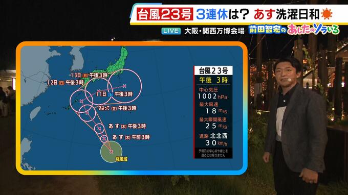 10月9日(木)の近畿地方は、カラッと秋晴れとなるでしょう。11(土)から3連休ですが、心配なのが台風です。 台風22号の情報です。非常に強い台風22号は、9日(木)にかけて関東の南の海上を東へと進…