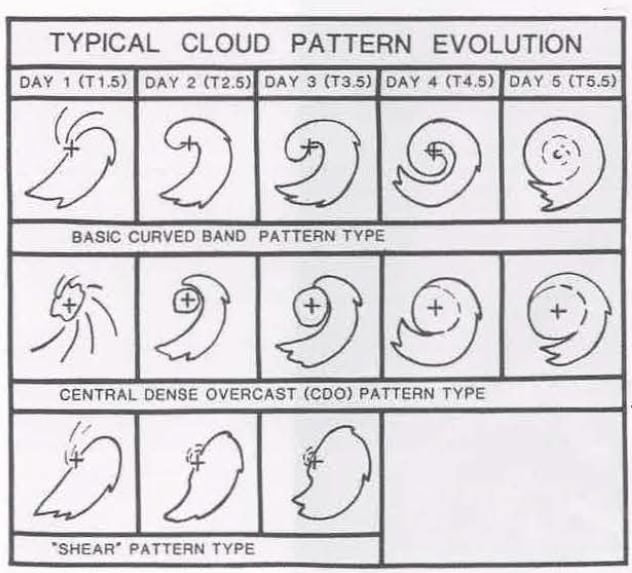 台風の気圧や風速などは、現在、アメリカの気象学者「ドボラック」が開発したドボラック法という、衛星の画像で雲の形や構造を分析する手法を使っています。つまり「推定」された値です。