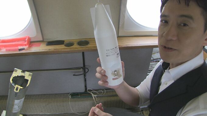 観測するのは、ガルフストリームG-Ⅳ。航空機に「観測器」を落下させるための筒がある、台風観測のための特別仕様です。