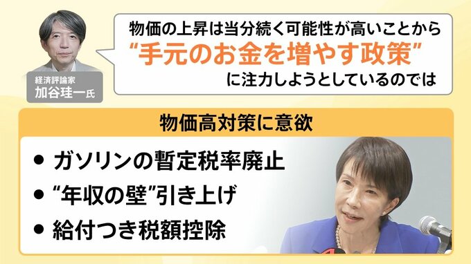 経済評論家の加谷氏は、高市氏の政策について「物価上昇は当分続く可能性が高いことから、“手元のお金を増やす政策”に注力しようとしているのでは」と分析しています。