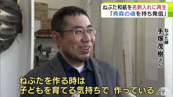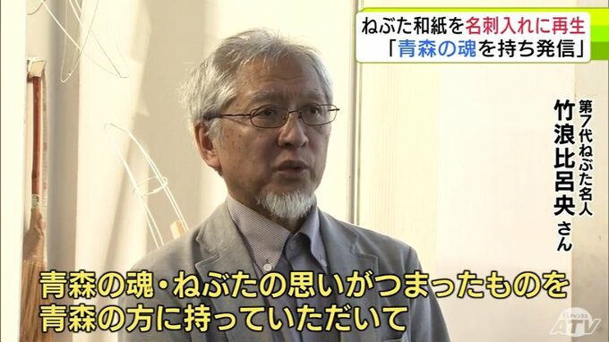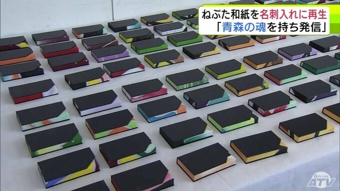 「青森の魂・ねぶたの思いがつまったものを青森の方に持っていただいて、人とのつながり・仕事の広がりと同時に青森を発信していただく意味を込めて、名刺入れにした」