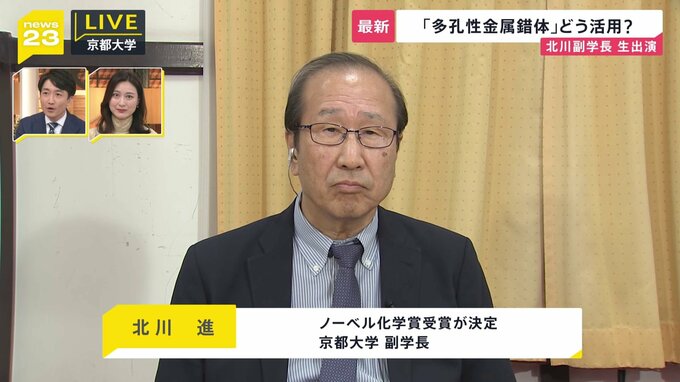 今年のノーベル化学賞に京都大学の北川進副学長らが選ばれました。8日に北川進さんが「news23」に生出演し、次世代へのメッセージを語りました。