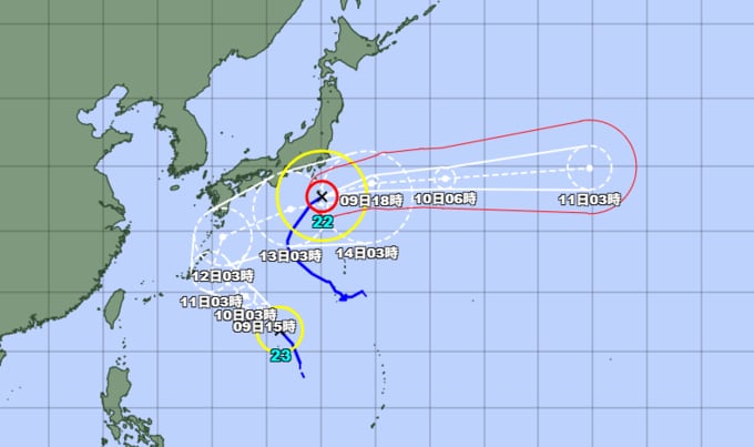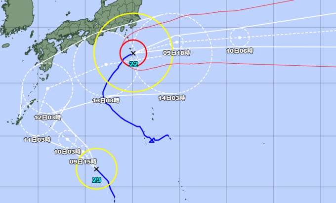 この台風は9日7時には、八丈島の南東約60キロの