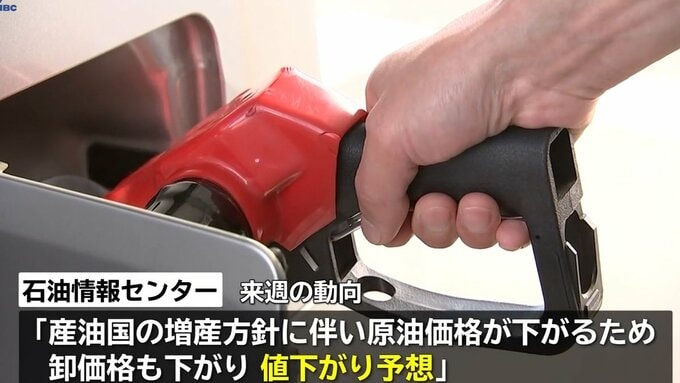 石油情報センターは来週の動向について、「産油国の増産方針に伴い原油価格が下がるため、卸価格も下がり、値下がり予想」としました。