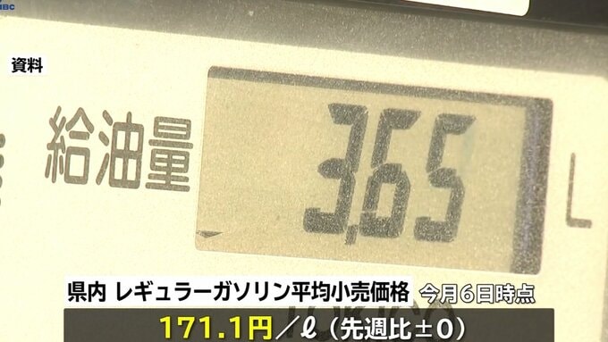 6日時点の岩手県内のレギュラーガソリンの平均小売価格は171.1円で、先週から横ばいでした。