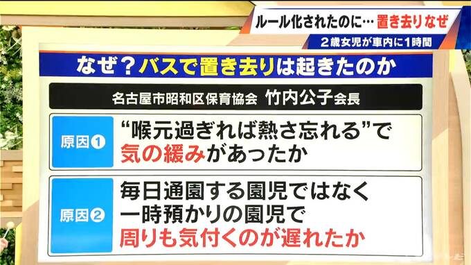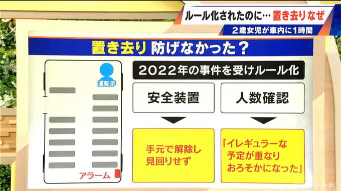 安全装置で言うと、安全装置はあったが手元で解除して見回りをしていなかった。一方の人数確認は、「イレギュラーな予定が重なりおろそかになった」と園長は説明しています。