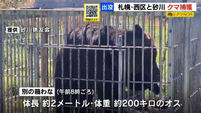 一方、札幌市西区西野でも午前6時半ごろ、箱わなにかかった体長約1.5メートルのメスのクマ1頭が駆除されました。