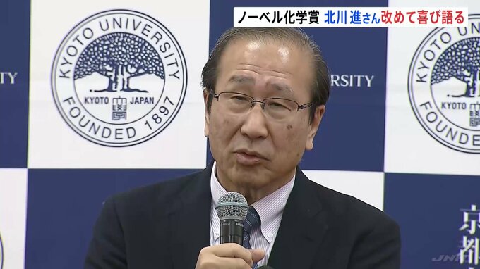 今年のノーベル化学賞に選ばれた京都大学の北川進特別教授。一夜明けて、改めて喜びを語りました。きのう、ノーベル化学賞の受賞が決定した京都大学高等研究院の北川進特別教授(74)。けさ、大学では職員らが拍手…