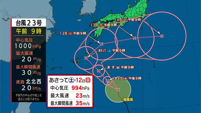 日本の南にある台風23号は11日から12日にかけて、奄美地方や九州南部に接近する見込みです。台風の進路によっては、警報級の大雨や暴風になる可能性があります。