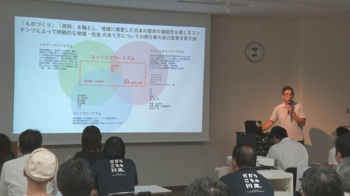 講演では岩城所長が三江線廃線跡の価値を強調しました。