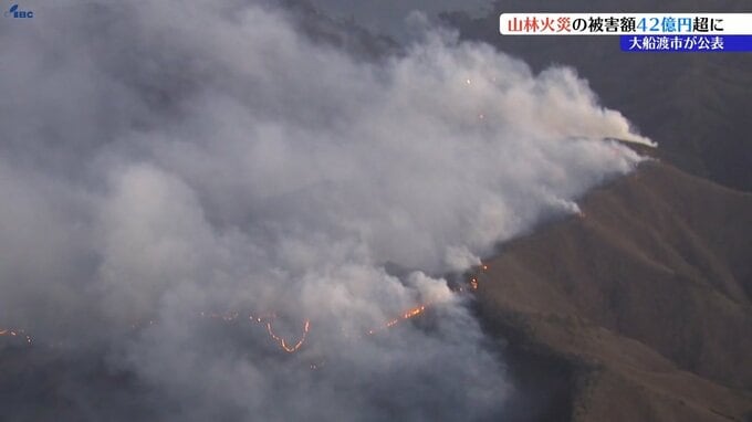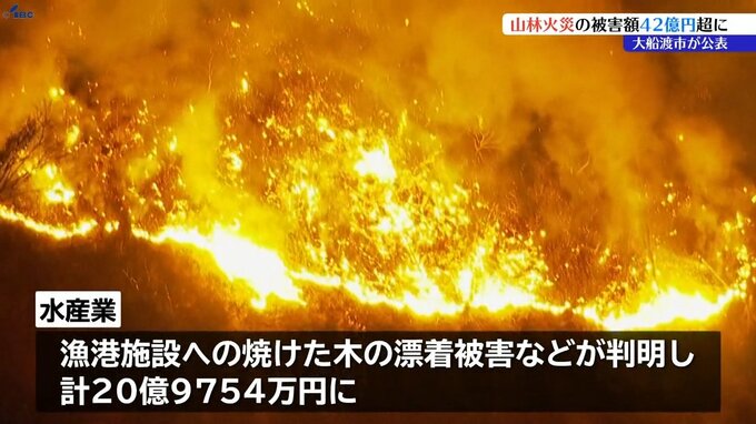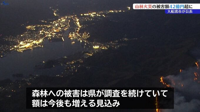 岩手県大船渡市がまとめた、2月に発生した大規模山林火災による産業などの被害総額は、9月に発表した額からおよそ13億円増えて42億円余りとなることが分かりました。