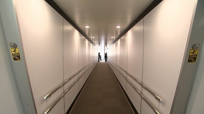 高松空港の昨年度の利用者は213万人と過去最多で、このうち国際線が48万人と順調に伸びています。空港はさらなる需要拡大に対応しようと国際線の施設の増築と改修を進めていて、その一環としてボーディングブリッジが新設されました。