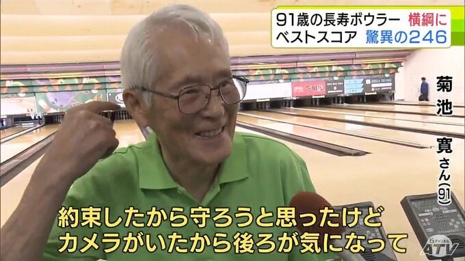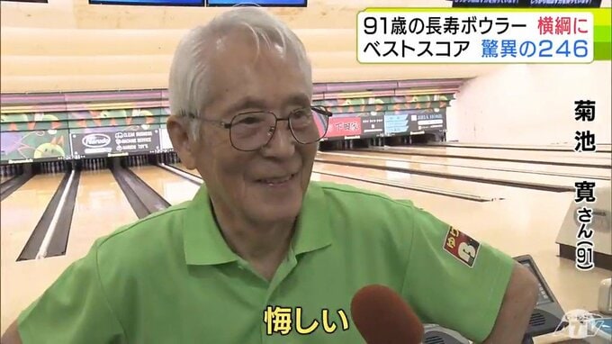 負けず嫌いという菊池さん。この日は思うように調子が上がらず、3ゲームでハイスコアは140に留まり目標には及びませんでしたが、それでも、最後の1プレーで「ストライク」をとって見せ場を作りました。
