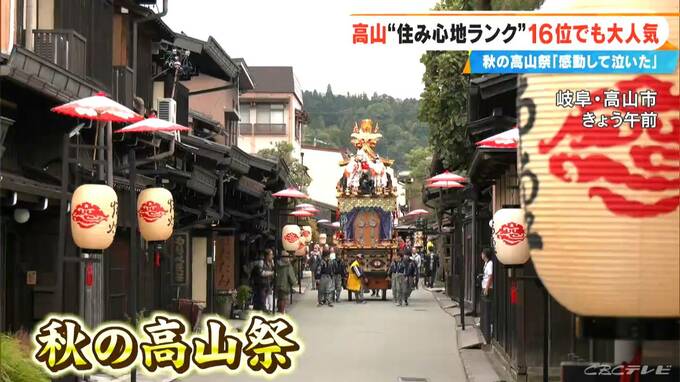 ランキングが岐阜県内16位となった高山市。去年は多治見市の一つ上の15位でしたが、ことしは順位が入れ替わりひとつランクダウン。それでも、10月9日は伝統の祭で活気に沸いています。