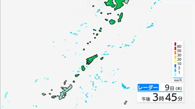 一方、種子・屋久、奄美の雨雲は海上が中心です。広い範囲で降っているわけではないようです。