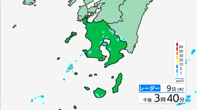 台風が近づく前から、9日の鹿児島市は変わりやすい天気になっています。この時間帯、青空も見えていますが、降水量を見ると、この1時間で1ミリの雨を観測しました。