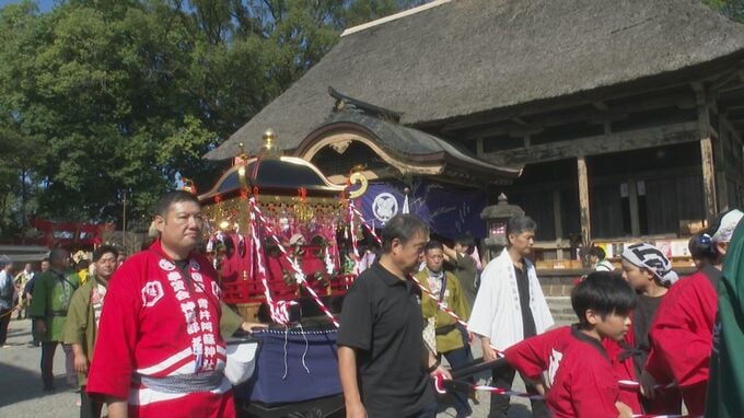 平日にもかかわらず、沿道には大勢の見物客が詰めかけ、小学生の鼓笛隊を先頭に子ども神輿や大人神輿など、2000人以上が参加した神幸行列の威勢の良い掛け声が響きわたりました。