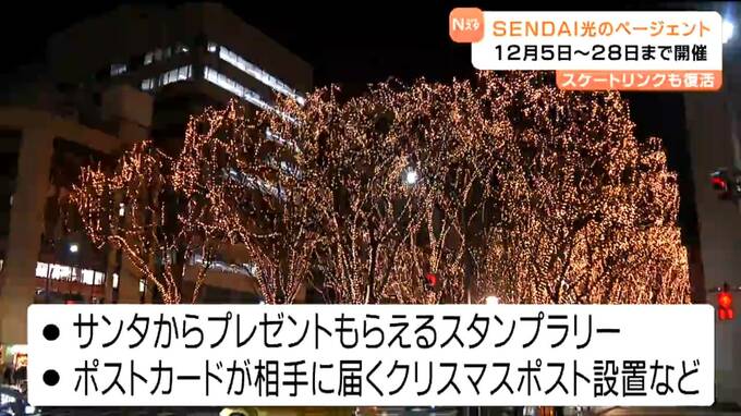 仙台市役所の建て替え工事に伴い2024年は西公園としたメイン会場は勾当台公園仮設広場となり、スケートリンクも復活します。また、2025年は新たにサンタからプレゼントをもらえるスタンプラリーや、ポストカードにメッセージを書き投函すると、25日に相手に届くクリスマスポストの設置などが計画されています。