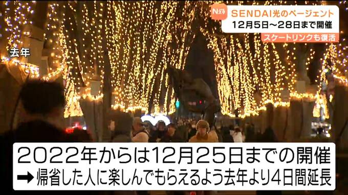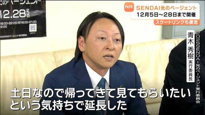 「コロナ以前は大みそかまでやっていたが、コロナの影響や物価高騰の影響で短縮傾向にあった。県外に行っている地元仙台の人たちも仕事納めが終わって土日なので帰ってきて見てもらいたいという気持ちで延長した」