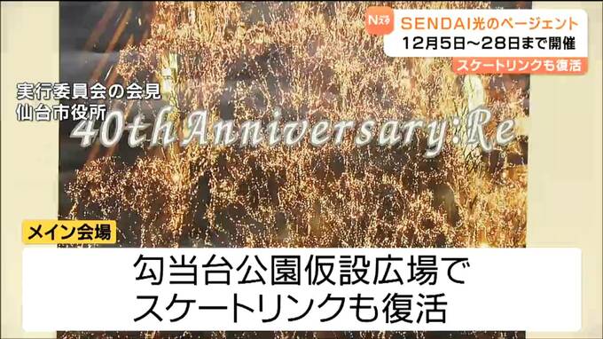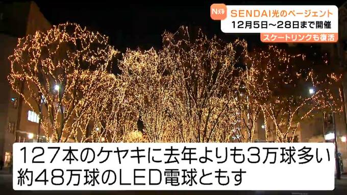 2025年のSENDAI光のページェントは12月5日から28日までの24日間開催されることになりました。近年はクリスマスまでの開催でしたが、仕事納めに合わせ期間を延長します。また、2024年は設置できなかったスケートリンクも復活します。