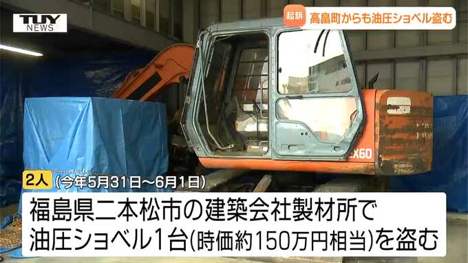 起訴状などによりますと2人は今年5月31日から6月1日までの間、福島県二本松市の建築会社の製材所で油圧ショベル1台、時価およそ150万円相当を盗んだとされています。