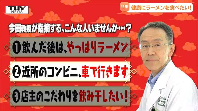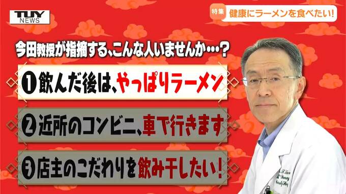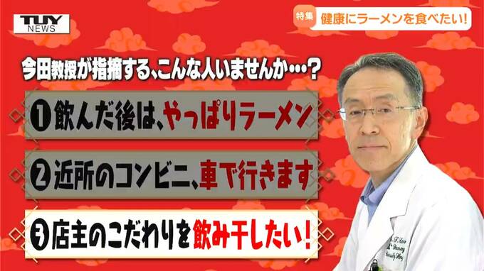 山形大学医学部 今田恒夫 教授「特にスープに塩分が多く含まれていますので、ラーメンをたくさん食べるということは塩分の取りすぎにつながっている可能性があると思います」