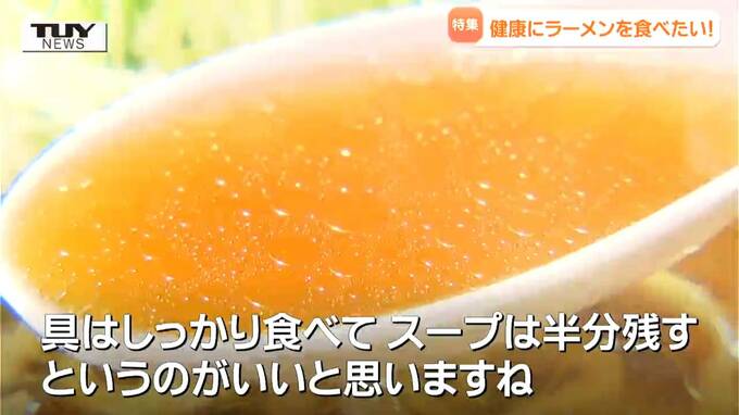 山形大学医学部 今田恒夫 教授「スープを半分以上残せば、死亡リスクは下がっていますので、週3回以上たべるにしても、具はしっかり食べてスープは半分残すというのがいいと思いますね」