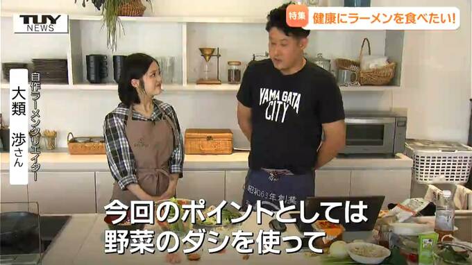 自作ラーメンクリエイター 大類渉さん「今回のポイントととしては、野菜のダシを使って味噌ラーメンをつくっていきたいと思います」