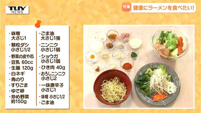 十分に野菜をとることと、塩分量に気を付けることをポイントに、自作ラーメンクリエイターの”わたふらい”さんこと大類渉さんにレシピを考えていただきました。