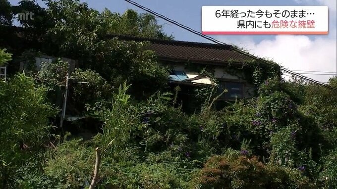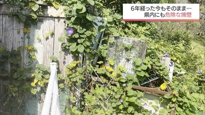 「こちらのコンクリートの擁壁が崩れ落ちていて、6年経った今でもそのままの状態となっています」