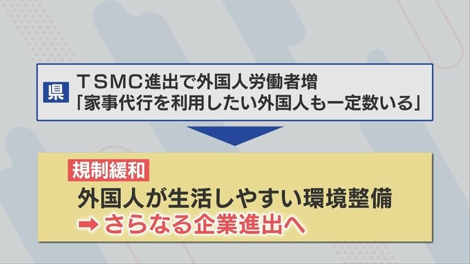 熊本県は、TSMCの進出に伴い外国人労働者が多くなったことで、家事代行を利用したいと考える外国人も一定数いると見ています。
