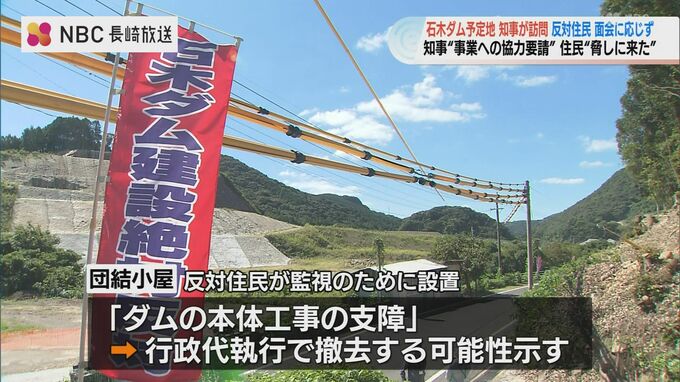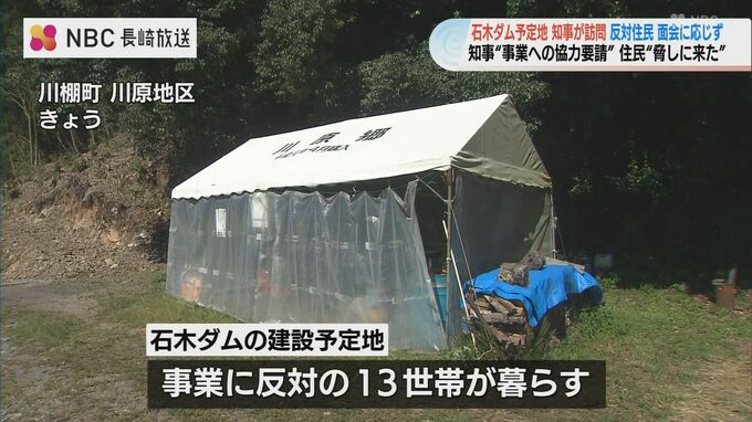 長崎県川棚町で建設が進められている石木ダムの予定地を9日、大石知事が訪れましたが、事業に反対する住民らは面会に応じませんでした。