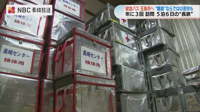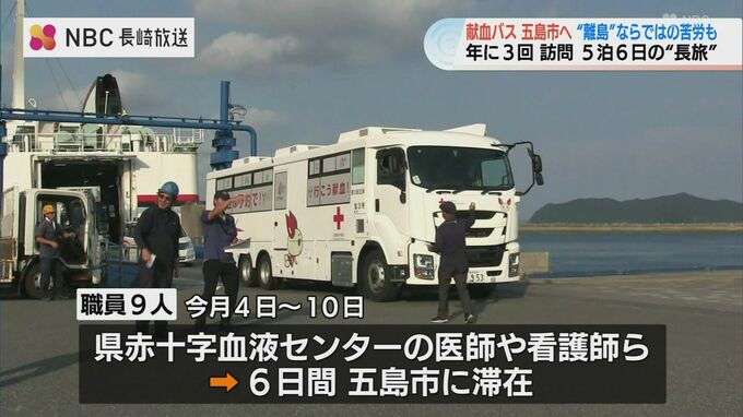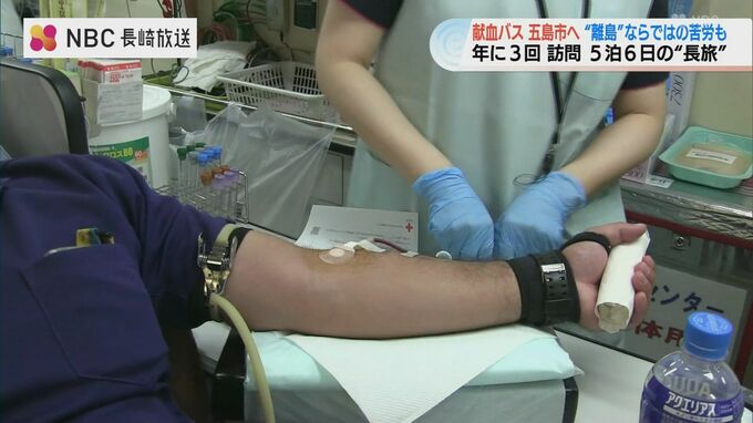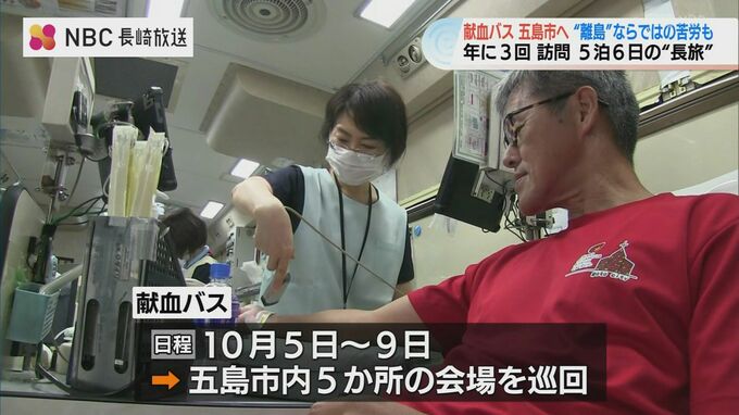 長崎県内各地の企業やショッピングセンターなどを周り献血への協力を呼びかける「献血バス」。「献血バス」が、年に3回五島に渡り、島の人たちに献血を呼びかけています。離島ならではの苦労や携わるスタッフの思いなどを取材しました。