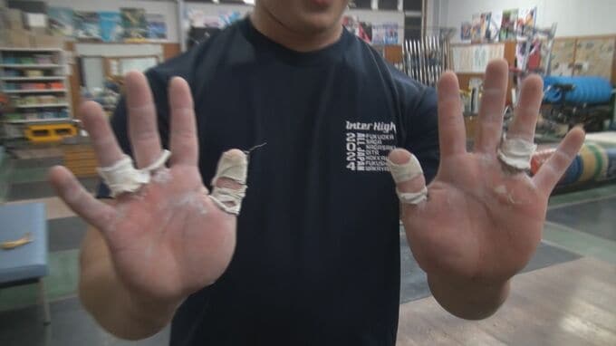 国スポ直前練習 高校生リフターの手の平は・・・