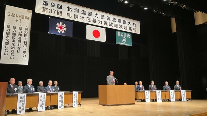 集会で友井昌宏 道警本部長は「暴力団勢力については、関係機関・団体の連携による対策推進により減少傾向にある」とした上で、「社会全体の治安対策上の脅威となっている『匿名・流動型犯罪グループ』いわゆるトクリュウについても暴力団と関係を持つなど、実態が確認されている」として暴力団排除の必要性を訴えました。