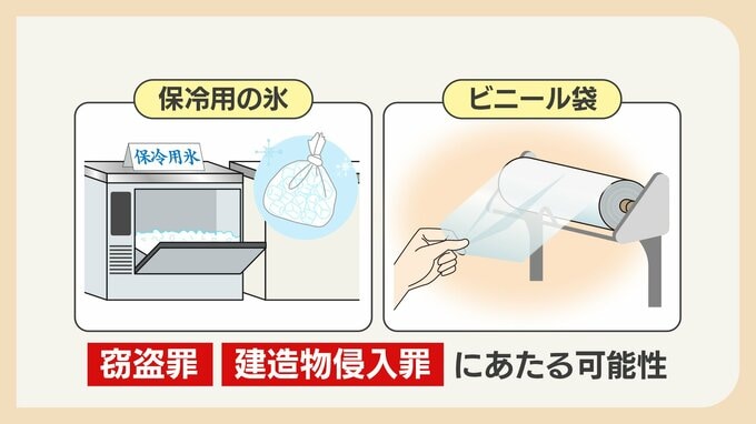 また、スーパーなどに置かれている、保冷用の氷やビニール袋といった無料で提供されているものも、必要以上に大量に持ち帰った場合は「窃盗罪・建造物侵入罪にあたる可能性がある」ということです。