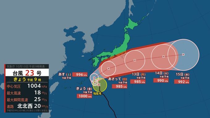 1時間におよそ20キロの速さで北北西へ進んでいます。