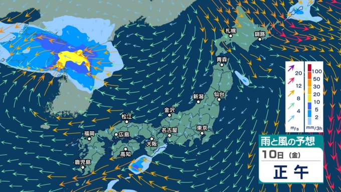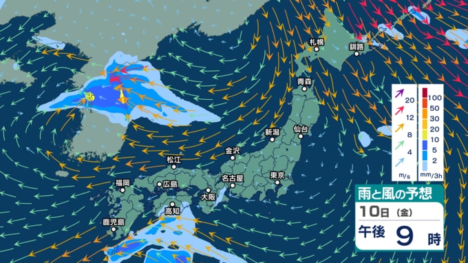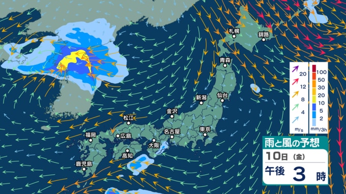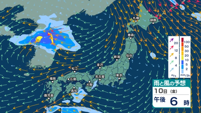 また、今後の雨と風のシミュレーションを見ると、あす11日(土)台風本体や台風の外側の雲が四国や九州などにかかる見込みで、太平洋沿岸を中心に風も強まりそうです。台風は太平洋を東に進む見込みで、太平洋側で雨や風が強まる時間帯もある見込みです。