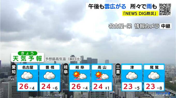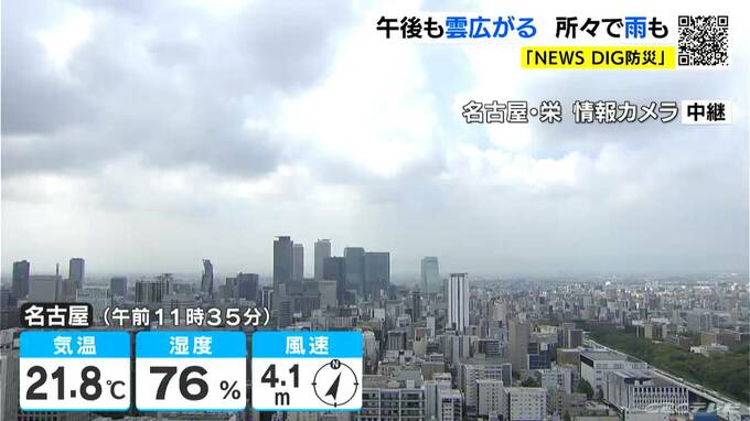 正午前の名古屋市内は、雲が広がっています。湿度は高いものの、朝から過ごしやすい気温が続いています。